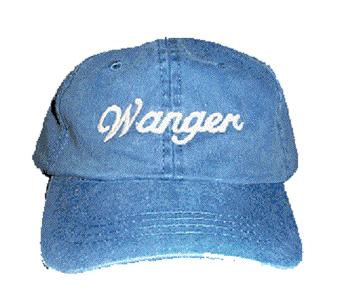 Embroidered monogram/name washed denim cap. Monogram is roughly 2"-4" high by 3"-4" wide for 3 characters. Name is roughly .5"-.75" high by 4" wide for 7 characters per line. In white. Allow 3-6 days for embroidering.